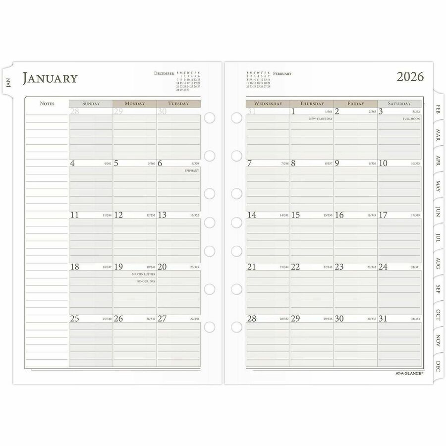 Daily, Monthly – 12 Month – January 2026 to December 2026 – 8:00 AM to 7:00 PM, Hourly – 1 Day Double Page Layout – 5 1/2″ x 8 1/2″ Sheet Size – White Sheet – 7-ring – Desk – White – Paper – Appointment Schedule, Task List, Notes Area, Ruled Daily Block, Tabbed – 1 Each