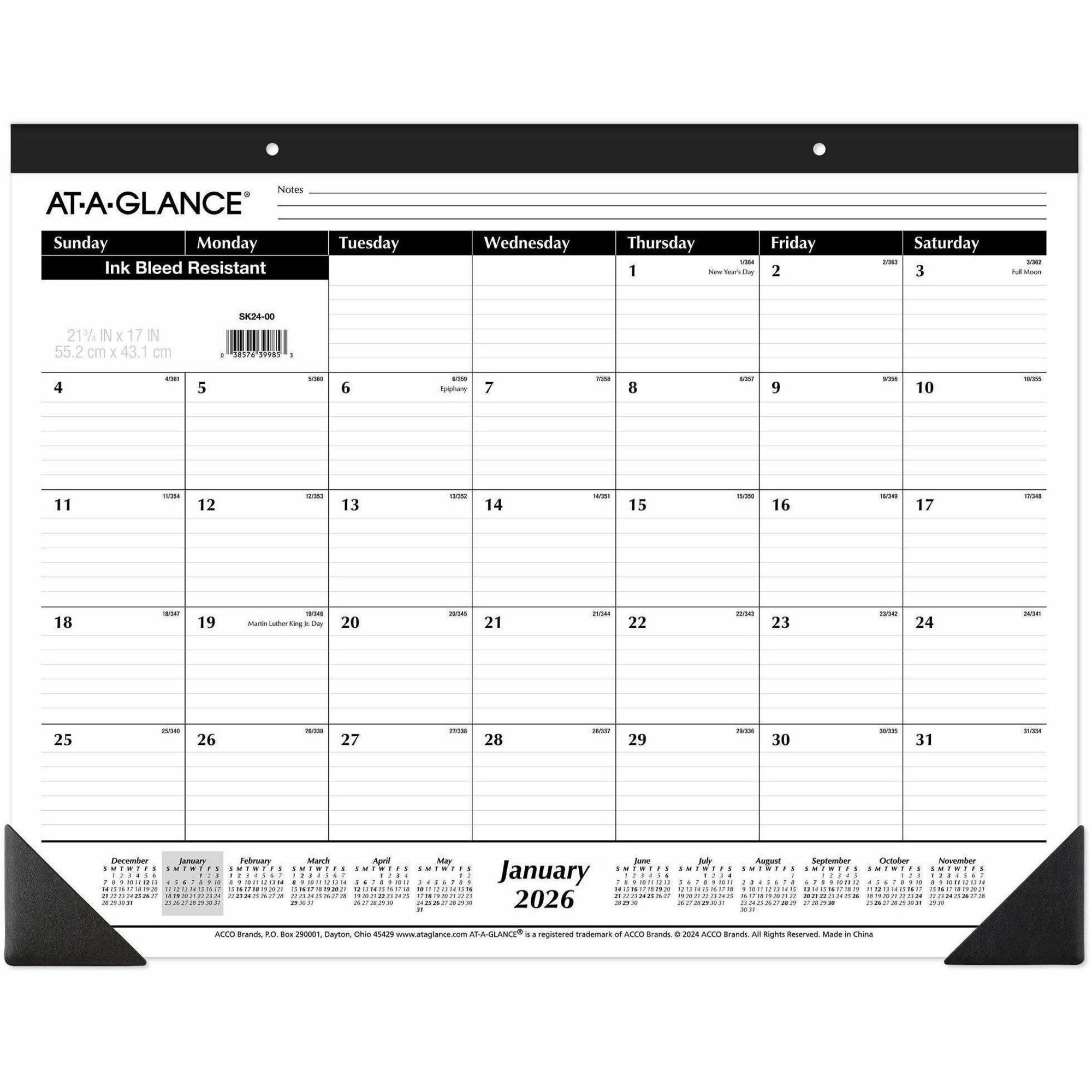 Standard – Julian Dates – Monthly – 1 Year – January 2026 to December 2026 – 1 Month Single Page Layout – 21 3/4″ x 17″ Sheet Size – White Sheet – 2.87″ x 2.37″ Block – Headband – Desk Pad – Black, White – Paper, Vinyl – Notepad, Ruled Daily Block – 1 Each