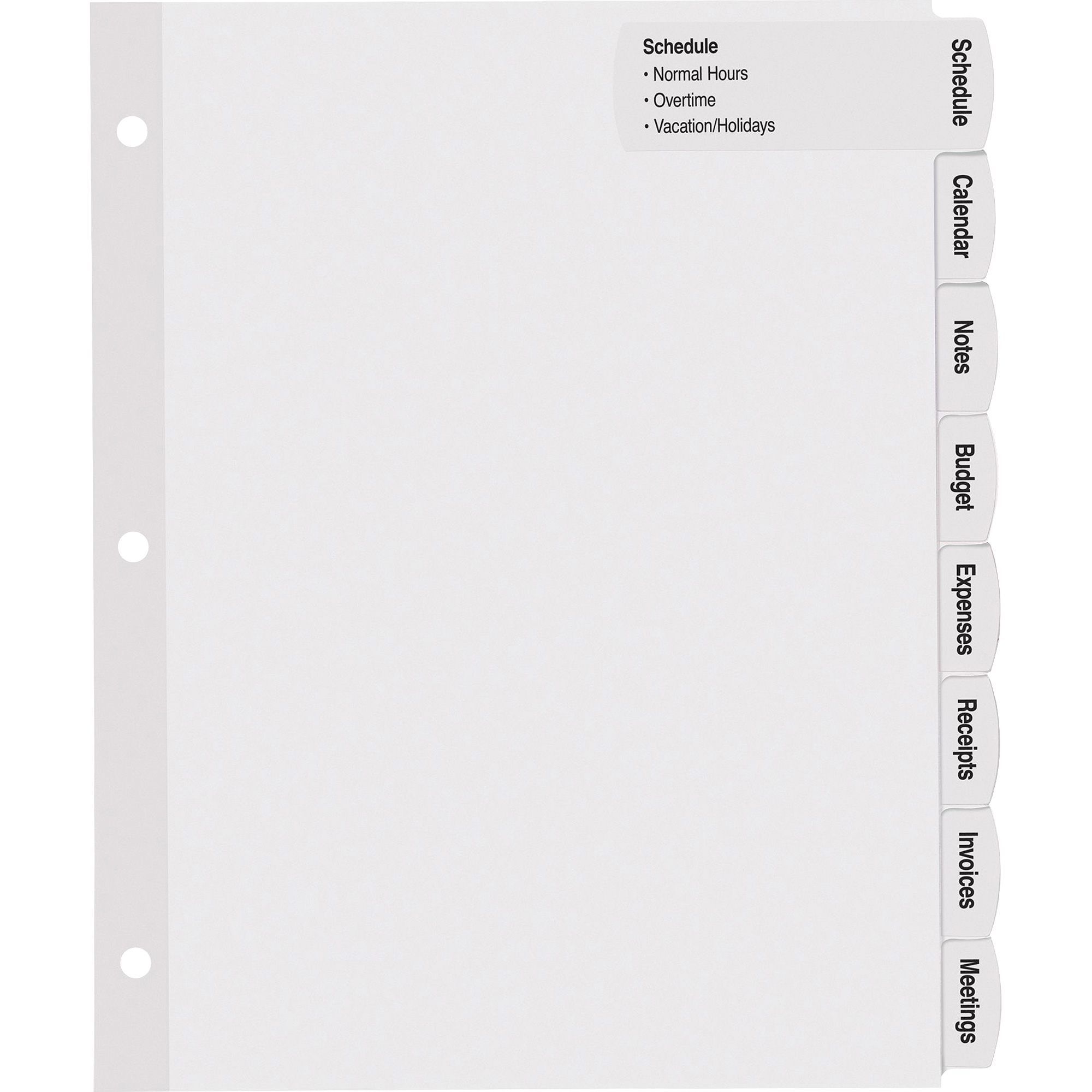 32 x Divider(s) – 8 – 8 Tab(s)/Set – 8.5″ Divider Width x 11″ Divider Length – 3 Hole Punched – White Paper Divider – White Paper Tab(s) – 20% Recycled – 4 / Pack