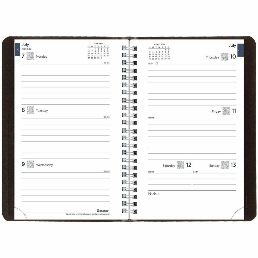 Julian Dates – Weekly – July 2025 to July 2026 – 1 Week Double Page Layout – 5″ x 8″ Sheet Size – Twin Wire – Black – Soft Cover, Tear-off – 1 Each