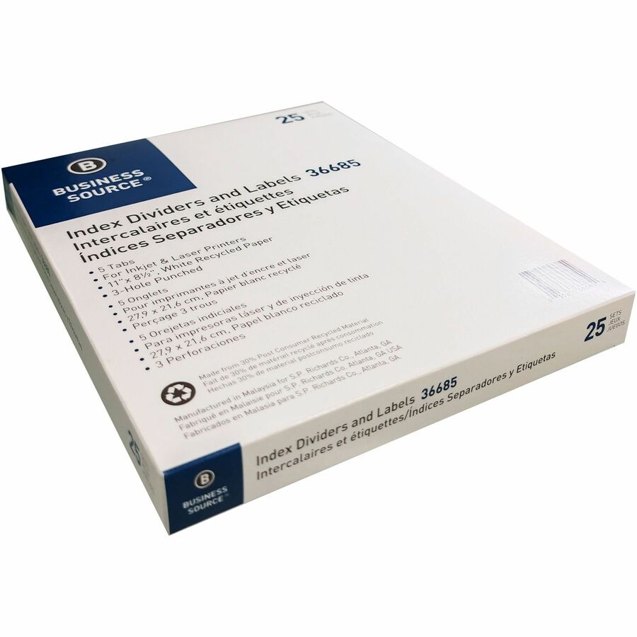 5 Blank Tab(s) – 5 Tab(s)/Set – 8.5″ Divider Width x 11″ Divider Length – Letter – 3 Hole Punched – White Paper Divider – White Tab(s) – 100% Recycled – Mylar Reinforcement, Reinforced, Punched – 25 / Box