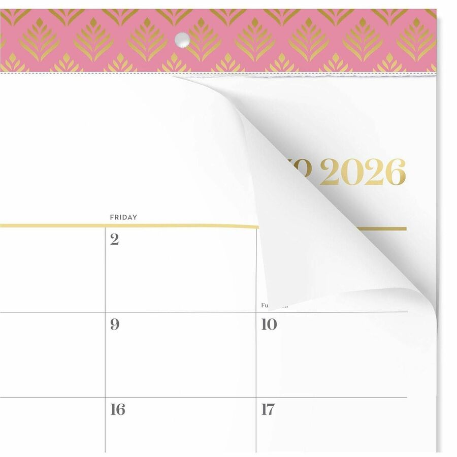 • Durable top binding helps the calendar stand up to wear and tear; eyelets for optional wall hanging